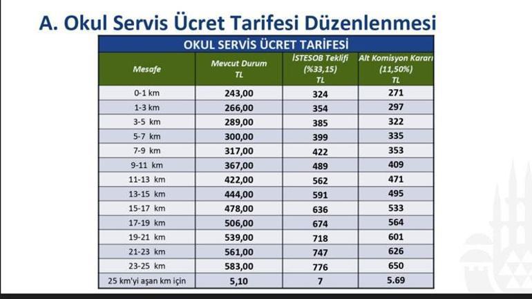İstanbul'da öğrenci ve personel servislerinde yüzde 11,50 oranında zam teklifi UKOME toplantısında kabul edildi.
